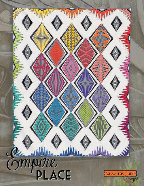 Empire Place is a contemporary paper-pieced quilt inspired by the amazing Art Deco era. Nine different diamond block designs create this modern quilt pattern. The book includes full-size foundation, step-by-step paper piecing instructions, a coloring page and more! The Empire Place quilt finishes 72" x 90"