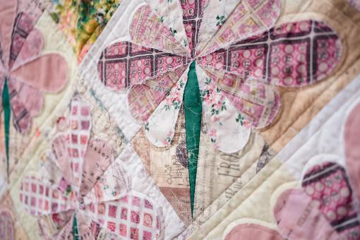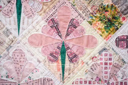 Create the feeling of a romantic getaway with the soft floral motif of Fleur, featuring the Pink Palette fabrics of Tim Holtz.