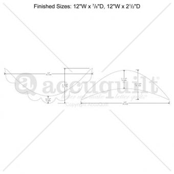 Scalloped Swag 12"W x 15/16"D x 4 3/4"H (30.5 cm x 2.4 cm x 11.1 cm) Crescent Swag 12"W x 2 1/2"D x 4 1/16"H (30.5 cm x 6.4 cm x 10.3 cm) |