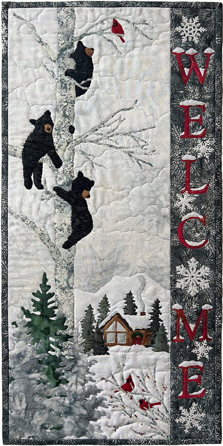 Quilt finishes at 16” x 32” Welcome Winter in with these sweet bears