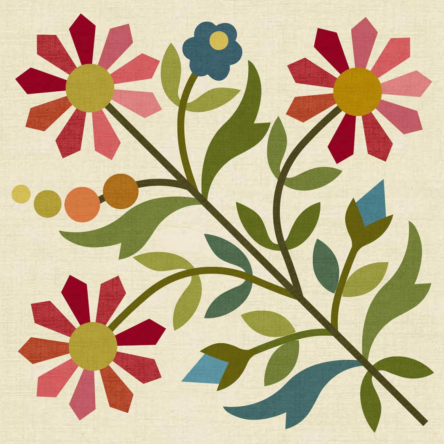 Spring Bouquet LT Block 9 Silhouette Kit – Laser-cut, fusible appliqué fabric shapes made with Linen Texture fabric for Block 9 of Laundry Basket Quilts’ “Spring Bouquet” pattern (LBQ-0300-P). Fabric is 100% cotton. Finished block size is 16in x 16in