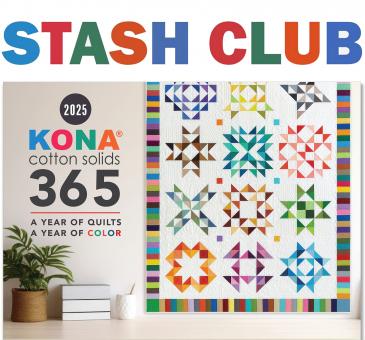 Der 2025 Stash Club Kona® Cotton 366 Charm Pack enthält sogar 504 Stoffstücke à 5" x 5" (365 Farben + color of the year 2025)