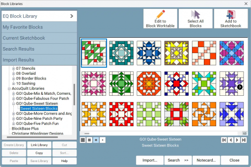 60 AccuQuilt GO! Qube blocks and 40 quilts for Electric Quilt 8 software!