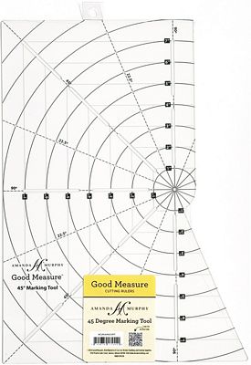 different fabric colors. Clearly marked 45-degree lines help in creating