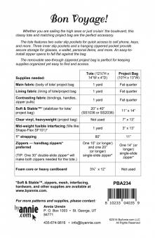 The pattern includes complete step-by-step instructions for making the bags with or without quilted fabric and for adding optional iron-on vinyl laminate to make the inside easy to wipe clean.