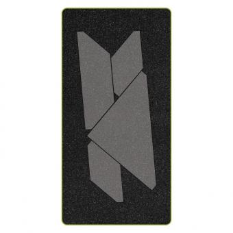 6 3/16"W x 3 5/8"H (15.7 cm x 9.2 cm) triangle; 5 1/2"W x 1 3/4"H (13.9 cm x 4.4 cm) trapezoid; Two diamonds-2 7/16" sides (6.2 cm)
