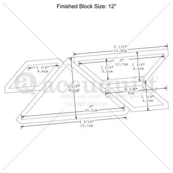 One die board, one classic quilt block! Combine 4 blocks to create 12" finished Hunter Star block. Designed to create one complete 12" block in two passes. Cut four layers of one fabric color, then reload and cut four layers of second fabric color.