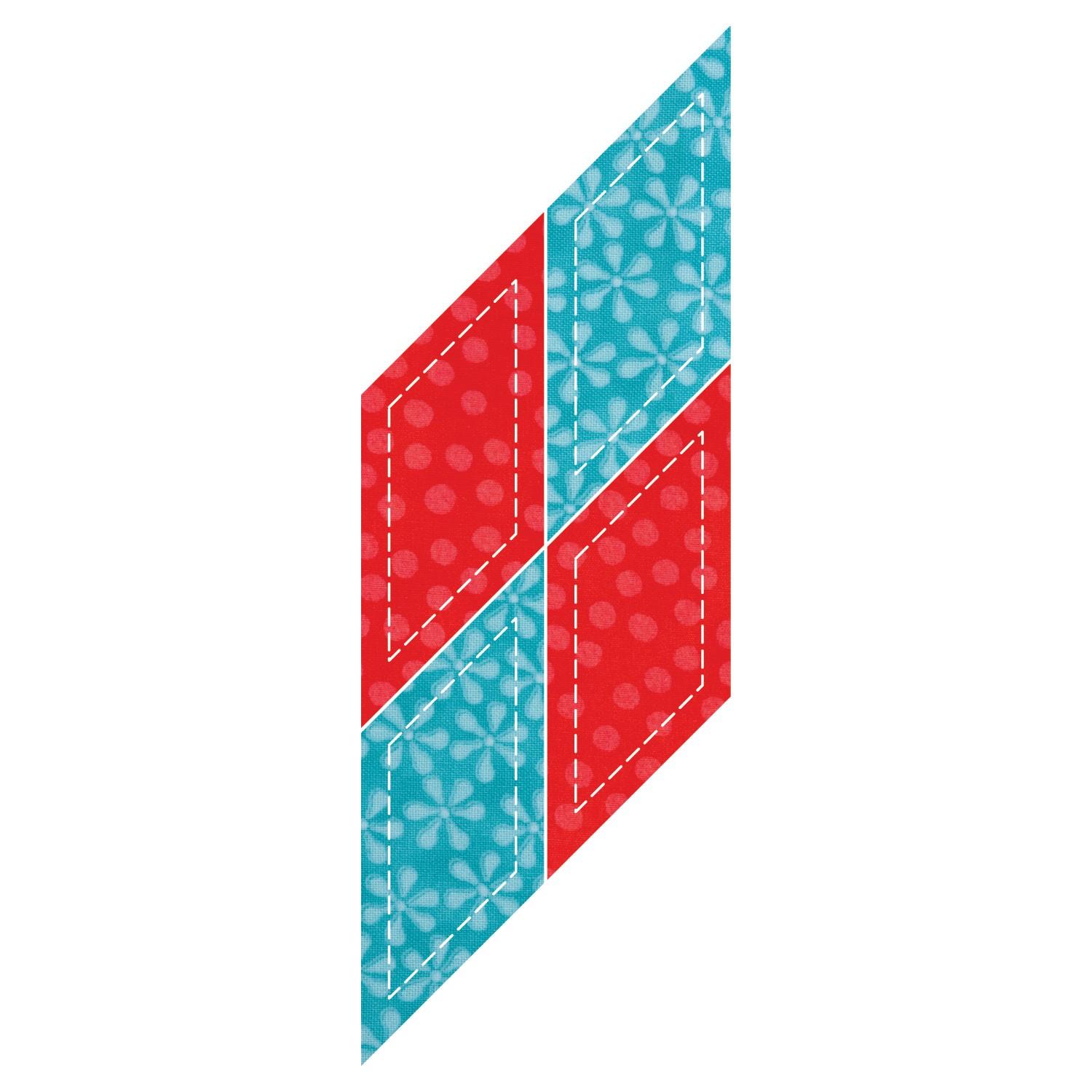 Parallelograms add a great twist to quilt designs. Use for star points, ribbon twist borders, pieced borders and more. This parallelogram shape has been designed to mix and match with additional AccuQuilt GO!® dies to create 6" blocks. A few of the blocks featuring this parallelogram include Flying Triangles and Wind Blown Square.