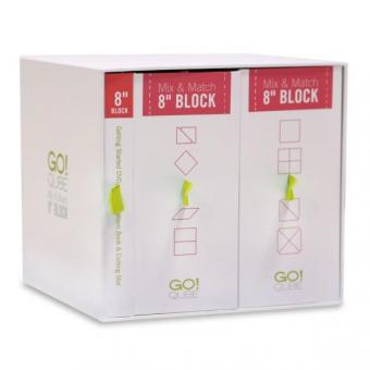 The GO! Qube Mix & Match 8" Block includes eight GO! Dies, a cutting mat, an instructional DVD, PLUS a FREE 20-page pattern booklet which includes 13 Mix & Match block patterns.
