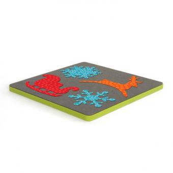 Reindeer 5-5/8"W x 5"H, Sleigh 5-7/16"W x 4"H, Large Snowflake 3-3/4"W x 4-1/4"H, Small Snowflake 3-1/2"W x 4"H
