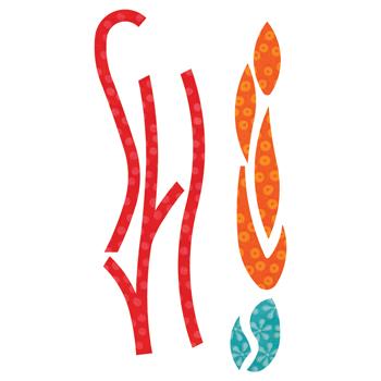 This die cuts three different stems and six sizes of leaves in a variety of shapes. Leaves are versatile and can be used for flower petals or combine stems to make them longer and cover the overlapped areas with leaves. Use this die with shapes from other GO! appliqué dies such as flowers or animals. Apply fusible web to the wrong side of fabrics before cutting for shapes that are ready to fuse and appliqué.