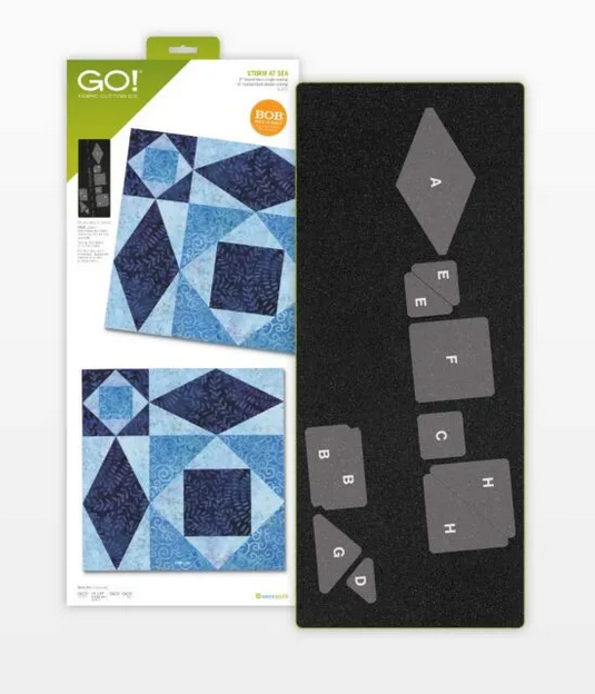 The GO! Storm at Sea die is a Block on Board® (BOB®) die that is specially designed to include all the shapes on one die board to create a 3-color, 9" finished repeating block with single sashing. The Storm at Sea die includes the highly requested 60° Diamond in a Rectangle for the sashing, specialized dog-ears and 1/4" seam allowances for easy alignment and piecing. Imagine how long it would take to cut all of these pieces by hand! The GO! Storm at Sea makes it so easy.