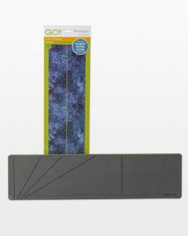 Quickly and easily cut perfect 2 1/2" strips for binding, narrow borders, sashing and more. Die blades are open at both ends to allow cutting of fabric that is still folded as it comes off the bolt. Lay cut strips across die perpendicular to blades to cut squares or rectangles; lay strips at a 45 or 60 degree angle to cut diamonds.