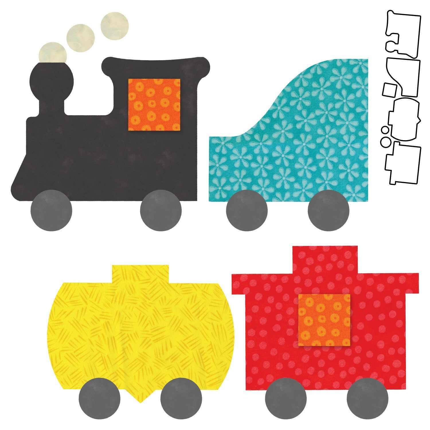 The GO! Train design will have your little tot dreaming of trains. Perfect for baby blankets, bags and wall hangings, this die cleanly cuts through multiple fabric layers to create an engine car, caboose, two train cars and a variety of accessories. Make quick appliqué by simply applying fusible web to the wrong side of fabrics prior to cutting, then cut using this die. Easy and adorable!