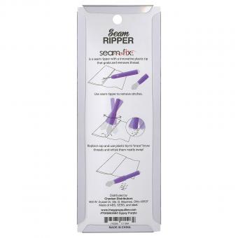 The seam ripper has a sharp blade, safety ball & cap. Special plastic material on the cap and end grabs and removes excess threads from fabric.