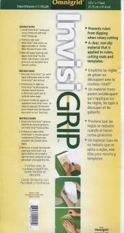 Unroll Invisi-Grip onto your rotary cutting mat with Invisi-Grip facing up. Position ruler over Invisi-Grip and rotary cut approximately 1/4" smaller than the size of your ruler. Peel off paper backing and apply Invisi-Grip to the under side of your ruler and press out any wrinkles for a smooth surface. 12-1/2" x 1yd package.