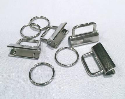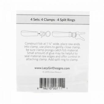 Beautiful key fob hardware brings elegance to your next project. 4 sets: 4 clamps, 4 split rings. Size 1.25in. Nickel finish. Works well with bright and earth tone fabrics. Coordinates with popular purse hardware in black, black nickel or gunmetal finish for a coordinated look. Use with our very popular Fobio key fob pattern (LGD137). Use Key Fob Hardware Pliers (LGD713) to easily attach key fob hardware to your project. Plier tips are coated to protect hardware from scratching.