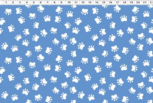 Kitty the Cat Paw Prints Medium Blue Meterware
