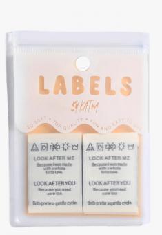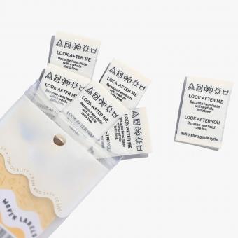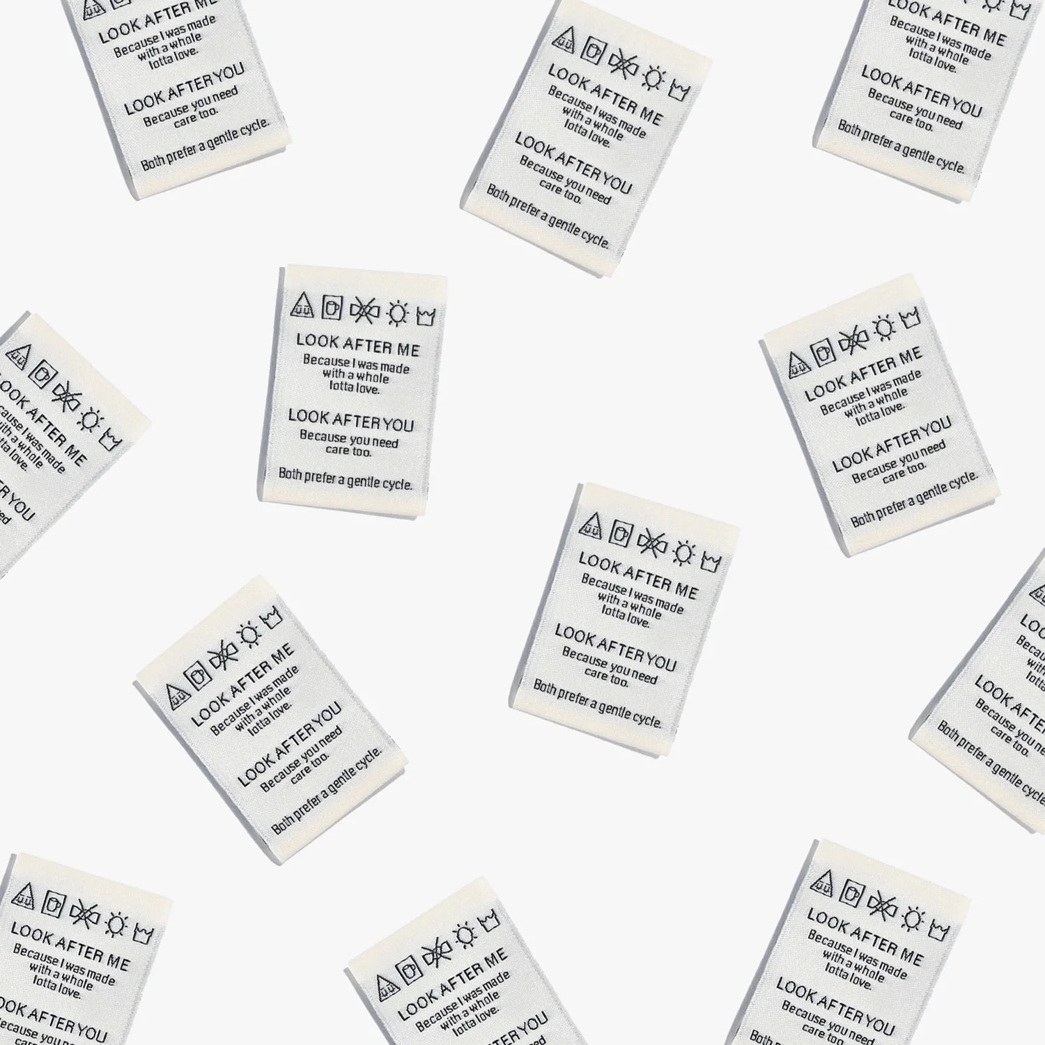 End fold labels are ideally sewn onto the garment (either inside or displayed visibly) by top stitching each end.