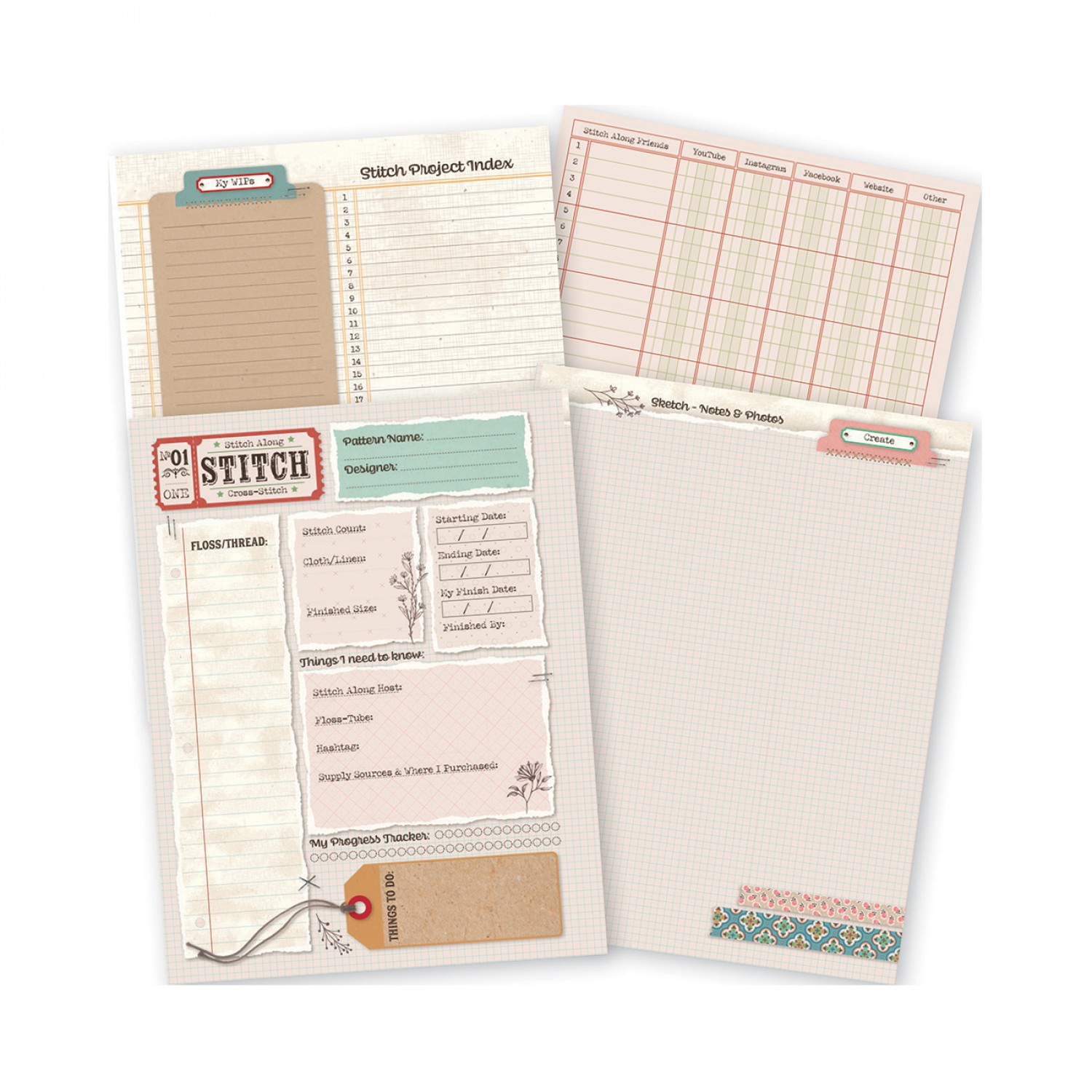 1/2" x 11" paper to keep track of all your stitch projects. The pages