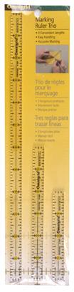Use these rulers to quickly and accurately perform a variety of marking tasks. The center line is exactly 1/4 inch from both edges of the ruler. This provides an accurate reference line for: marking 1/4 inch sewing lines - adding 1/4 inch seam allowances - checking 1/4 inch seam allowances - marking 1/4 inch quilting lines. The three ruler lengths accomodate a variety of different size marking tasks. Use a pencil with a fine - sharp point for the most accurate mark. CAUTION: Do not use rulers with rotary cutters - knives or other cutting instruments. Rulers are designed for marking use only. Injury may result if rulers are used for cutting and trimming tasks.