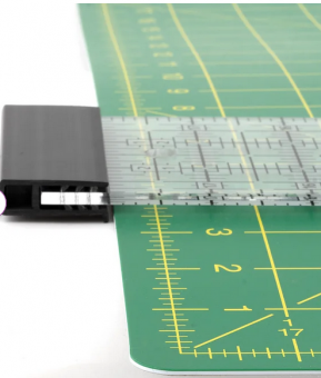 cutting; the ruler's lip, or channel, is easily removed to position the