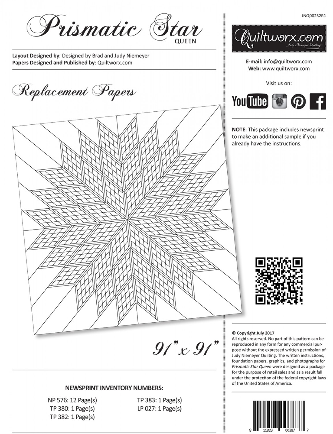 This package includes newsprint foundations to make an additional sample if you already have the instructions.
