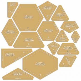Queen of Diamonds by Tula Pink Acrylic Fabric Cutting Template Set (16 Pieces) with 3/8" Seam Allowance in Clear Acrylic. Pattern and Paper Pieces Sold Separately.