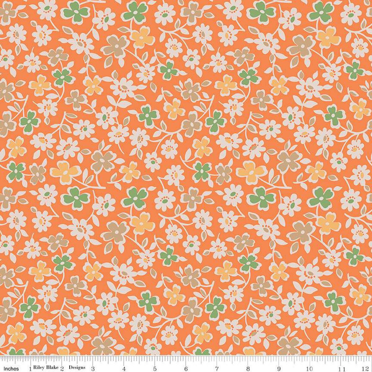 delightful floral pattern with small flowers in shades of orange, teal,