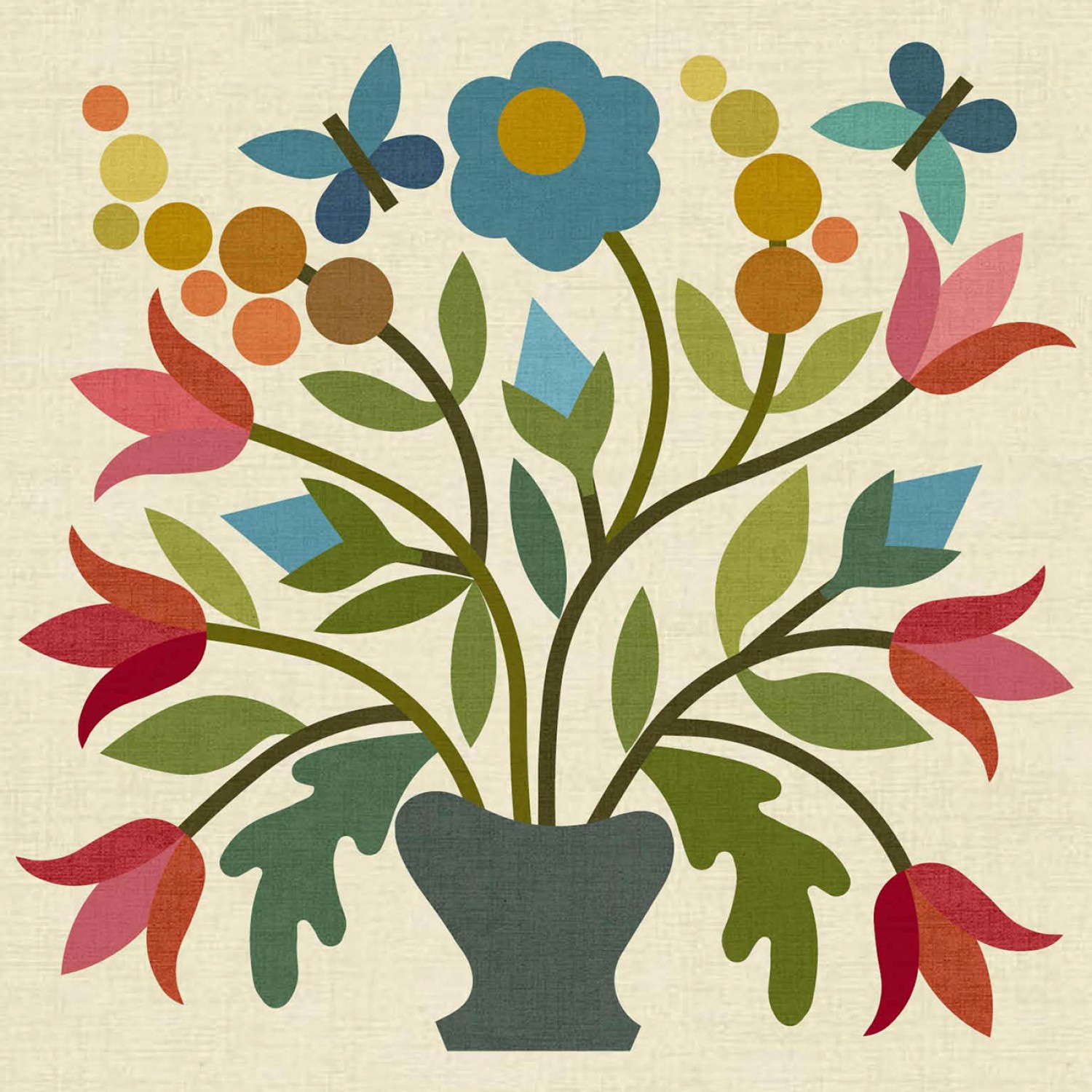 Spring Bouquet LT Block 5 Silhouette Kit – Laser-cut, fusible appliqué fabric shapes made with Linen Texture fabric for Block 5 of Laundry Basket Quilts’ “Spring Bouquet” pattern (LBQ-0300-P). Fabric is 100% cotton. Finished block size is 16in x 16in