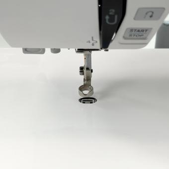 needle hole on your machine. The pink sticky back will hold it in place