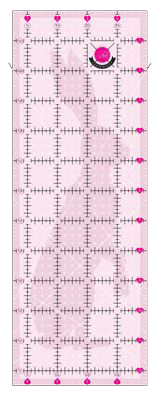 Tula Pink 4.5in x 12.5in Rabbit Cutting Ruler is a US made ruler that features: nonslip coating, fuzzy cut and angle markings, 1/4in margins all around, two color markings with fine marking lines for accurate cutting, and clear center squares for accuracy.