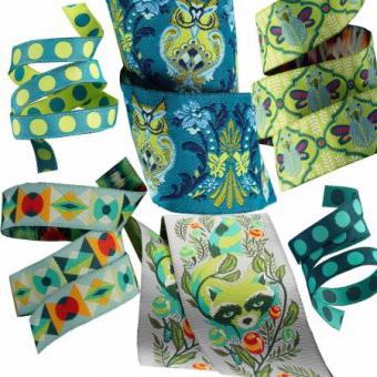 This pack of gorgeous woven ribbons features a selection from Tula Pink’s ALL STARS, her collection of the best of the best designs; raccoons, owls and geometrics coordinate with her super-popular cotton quilting fabric produced by Free Spirit Fabrics.