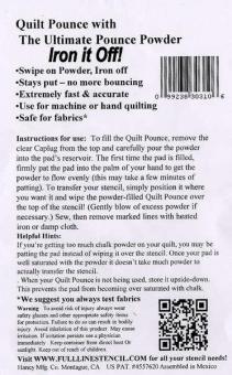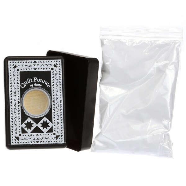 Transfer Chalk Pad Ultimate White Hancy Mfg Quilt Pounce Stencil Marking Pads are the ultimate marking tool. They are easy to use, a super time saver, extremely accurate, safe for all fabrics, although you should always test fabrics, and can be used for machine or hand quilting. Ultimate Quilt Pounce Pad Ultimate Iron Off lets you pounce on the powder, then iron it off! This powder stays put, no more bouncing. Safe for most fabrics. Comes with a hard plastic case for storage of the pad, so there is no mess. Includes a 2 oz bag of powder.