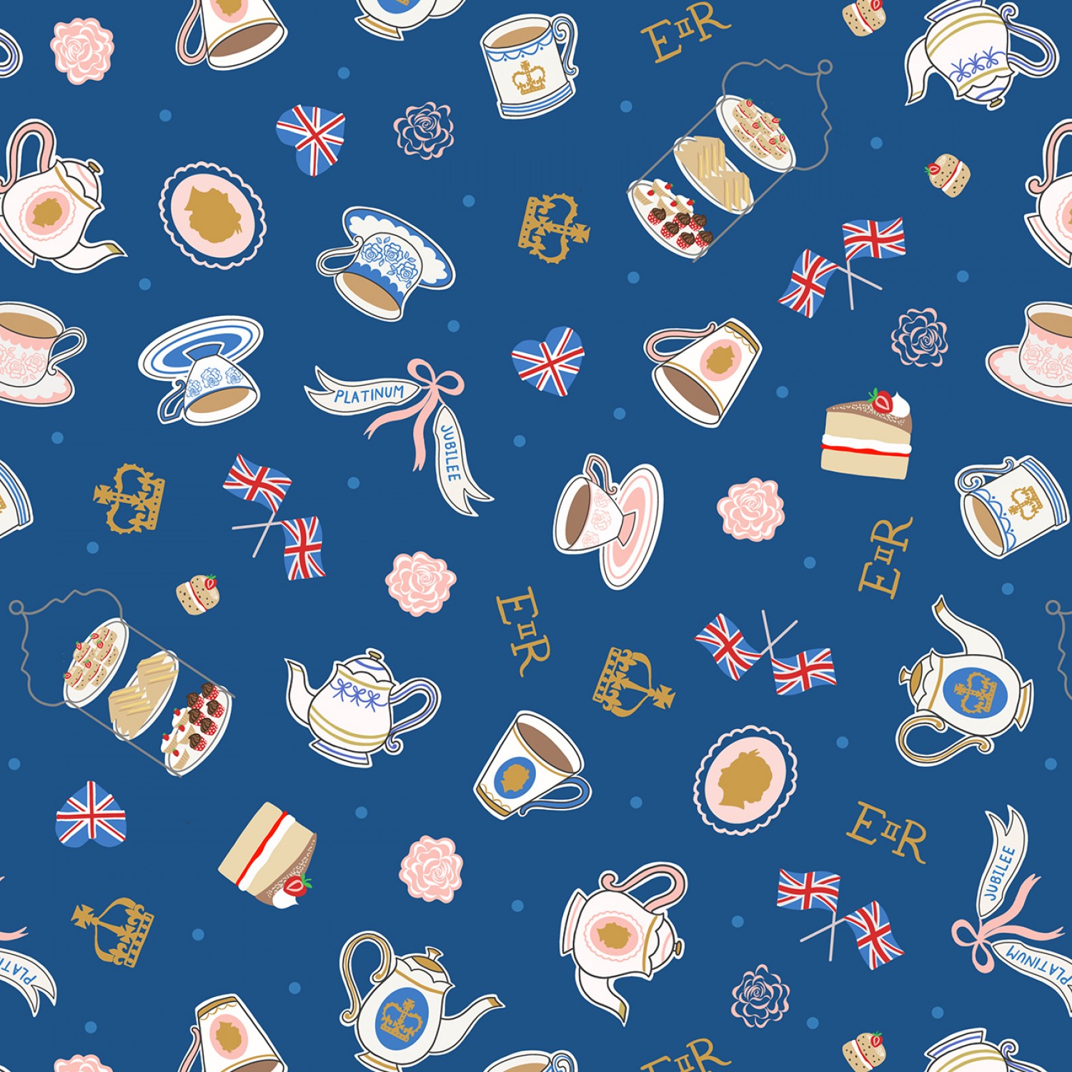 Jubilee on royal blue Gold Metallic Meterware
