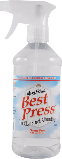 With Best Press, there’s no flaking, clogging, or white residue on dark fabrics. A special stain shield protects fabrics, and the product helps resist wrinkles. Best of all, it’s more effective than any starch you’ve ever used. Try Best Press today- you will never go back to ironing with spray starch!